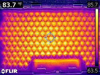 We have developed a heater pad system that evenly distributes power to all areas of the unit. The attached thermal scan shows the even distribution of the heat.